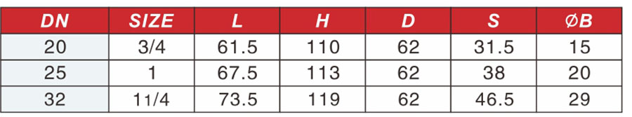公稱通徑: DN15 ~ DN25.